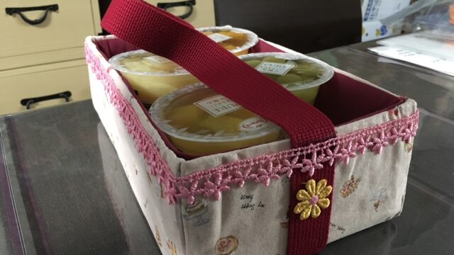 この「兜」は東北地震のときにみんなで作った「元気雛」と呼ばれ「元気を出そう」ということで、一年中飾っていても良い飾りだそうです。帯なので固くて大変ですがとても喜んでくださいました。そして上の子がいつもは食が細いそうなのですが、私の作ったご飯を「“美味しい“と言ってパクパク食べてくれました!」とママからはメッセージで、パパからはお庭で会った時に言っていただきました。