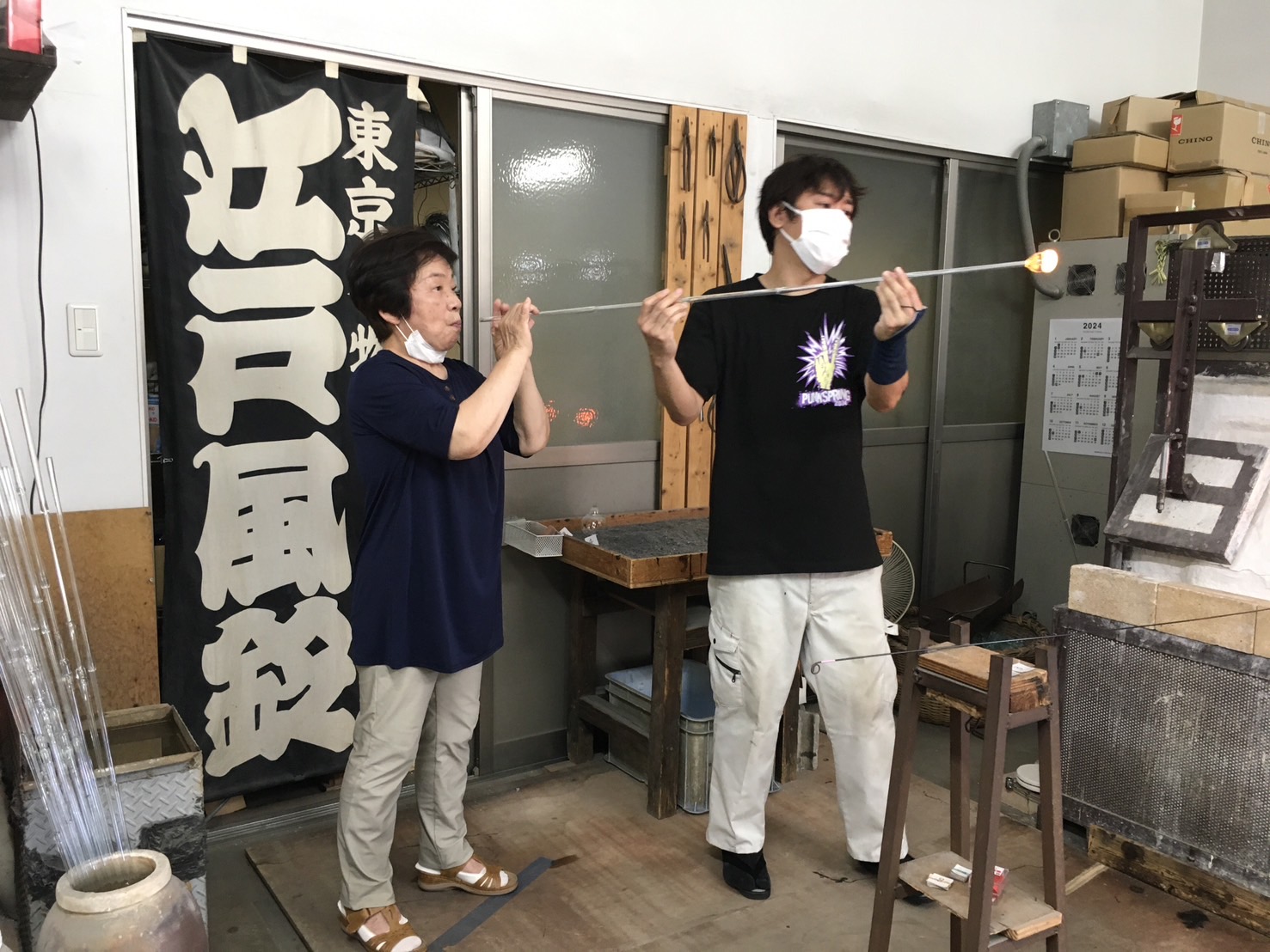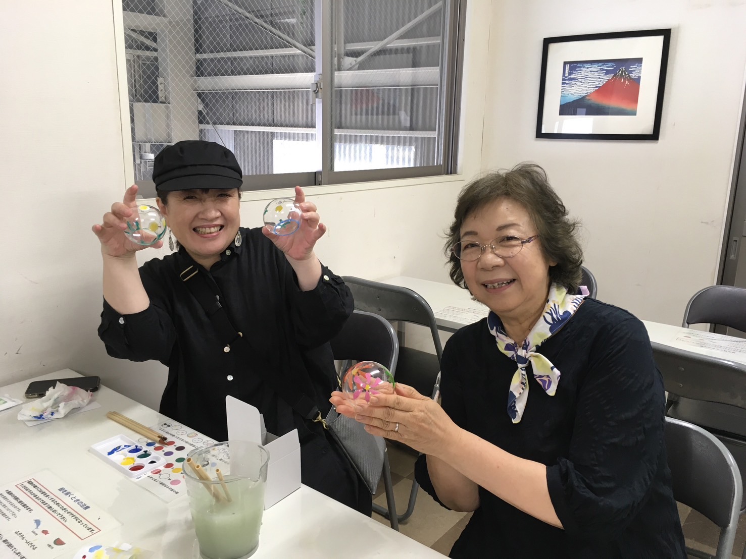 私が一番最初に“いかに難しいか”を見せるために、失敗作を2度ほど作らされて、皆さんの笑いものにされました。その後、絵付けを筆で風鈴の中にするのですが、それがまた難しかったです。それも上手に書けるようになるには3年かかるそうです。
