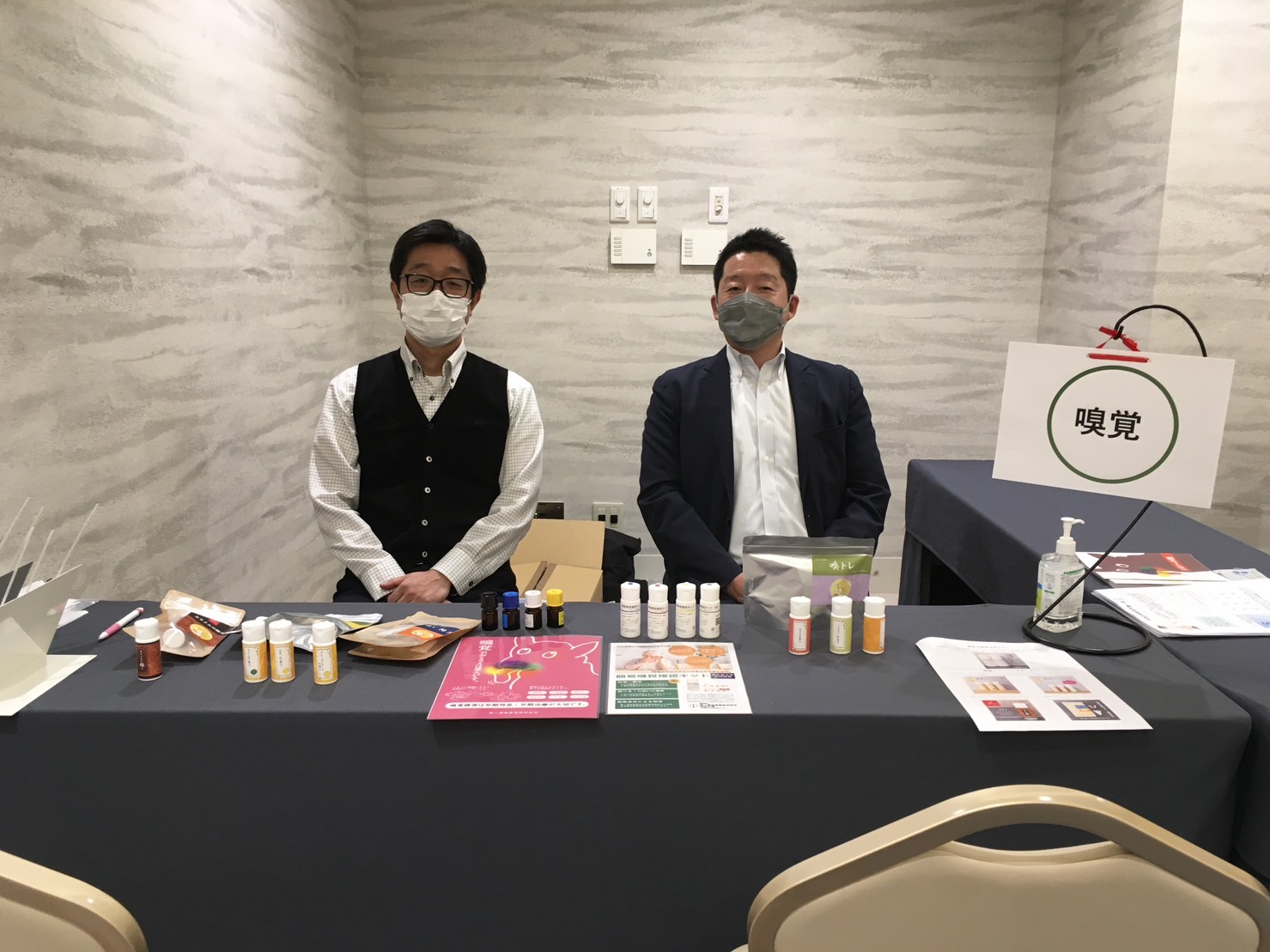 2年前「いちかわ新聞」で「嗅覚検査キットを開発した」という記事を見て、いつかお会いしたいと思っていたのですが、ついにその時がやって来ました!お電話をさせていただいたところ、専務の深澤さんがすぐに来てくださって、快く「協力しますよ」と言ってくださいました。この専務さんの快諾で勇気をもらい、開催に向けて頑張ることが出来ました!