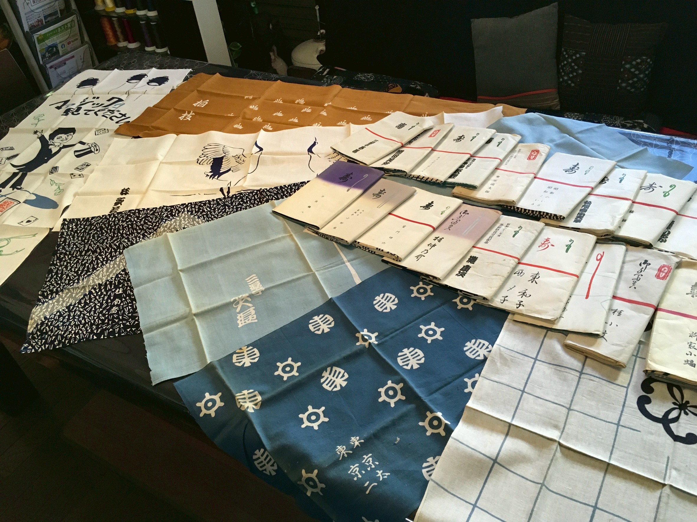 今朝「これ保存状態があまり良くないけど使って」と言って、噺家さんの手ぬぐいを24本持って来てくださいました。ありがたいです。何かの作品にしてプレゼントしたいです。